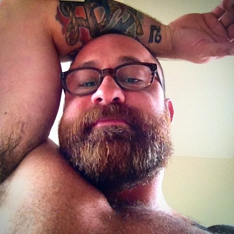 There is so, so much I love about this guy! He’s a 37 year-old top from California with ridiculously sexy tattoos, cute glasses and one of the most beautiful beards I’ve ever seen on Manhunt. He has a statement about the importance of PrEP in his profile. He is partnered and open to playing, and I could easily imagine myself riding his tongue and 8 inch schlong for hours and hours.