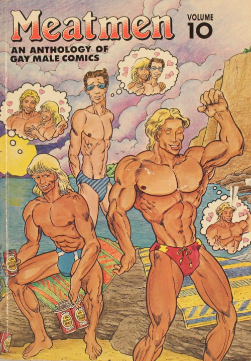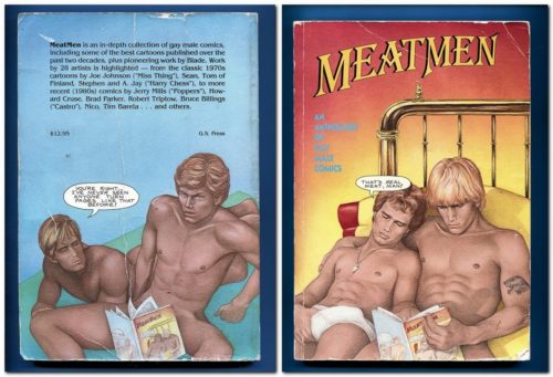 Some of you Manhunt Daily readers who are little more mature in years probably recall Meatmen! It was a gay erotic comic art anthology that ran from 1986 and 2004, and provided plenty of delightful wank material to those who had access to a gay bookstore in the beginning, and then could order it online in its later years. Here’s a list of artists who appeared in the anthology over the years (via Wikipedia):