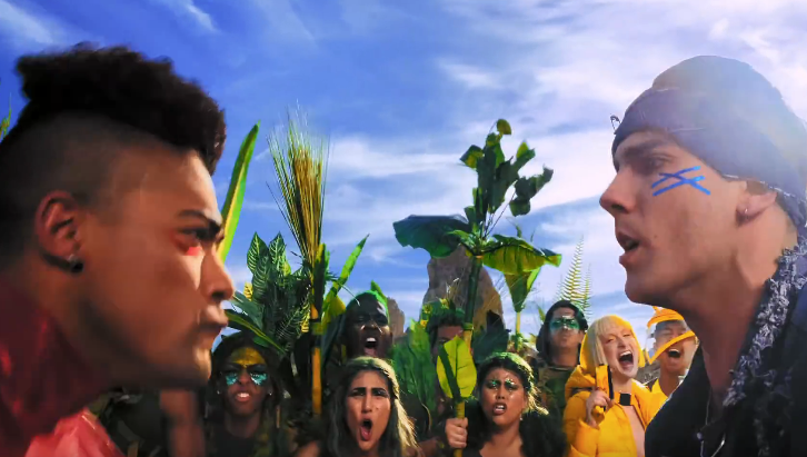 “The world rots in conflict. Many tribes battle for dominance. While the Spiritual ones pray and sleep for peace, the Kindness punks fight for Chromatica,” reads a slide at the start of the video.