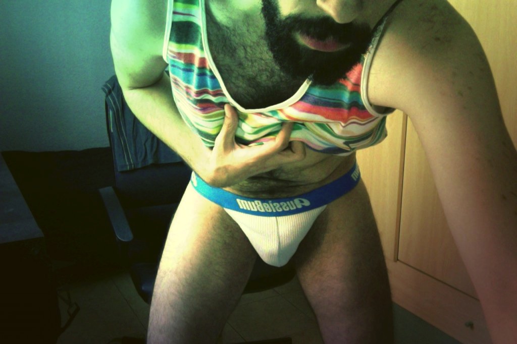 I’ve got a hunch that this fuzzy, 25 year-old fellow from Madrid enjoys showing off his body. It might be the pictures of his crotch and ass in his Manhunt profile that gave me that impression. Whatever the case, you might want to suggest camming with him one-on-one some time. He writes in his profile that he’s eager to meet new people, but I highly doubt that he’d object to jerking off online with you.