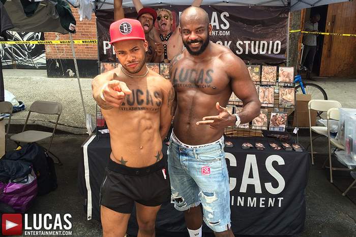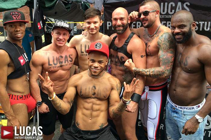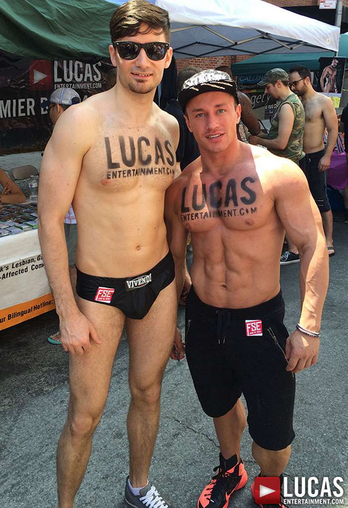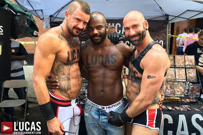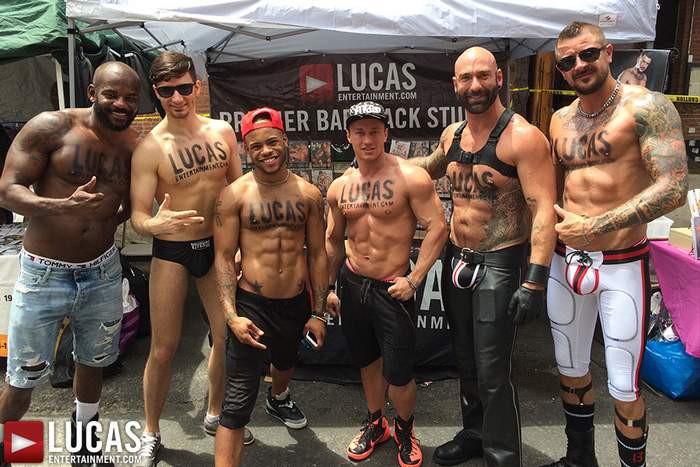Lucas Entertainment participated in the 2015 Folsom East Street Fair this past Sunday, 21 June 2015, in New York City. At their booth, fans can meet and greet with gay porn stars Drew Sebastian, Dolf Dietrich, Rodrigo Beckman, K.D., along with one hot beefy model.