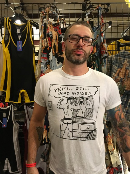 So while I figure out exactly what I saw (17 total penises, Rikk York, Boomer Banks, and Hugh Hunter’s butts, the largest dildos in the whole world at the Fort Troff store, Bravo Delta wearing multiple cockrings, and Deviant Otter riding one of my coworkers whilst he looked for something under the booth table, to start with), here’s the highlights, in photo/tweet form: