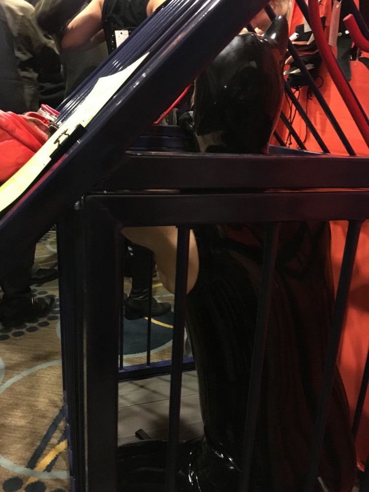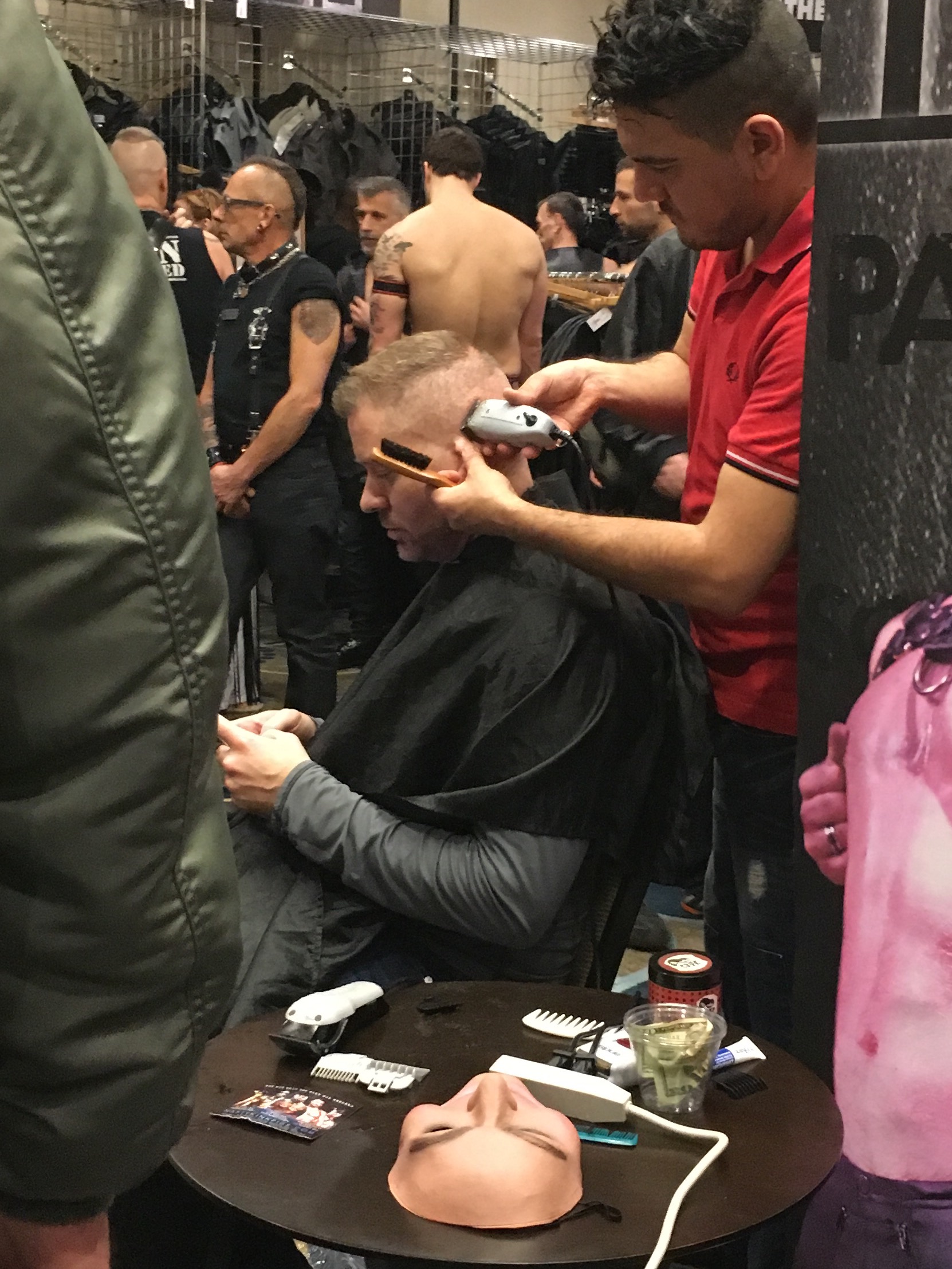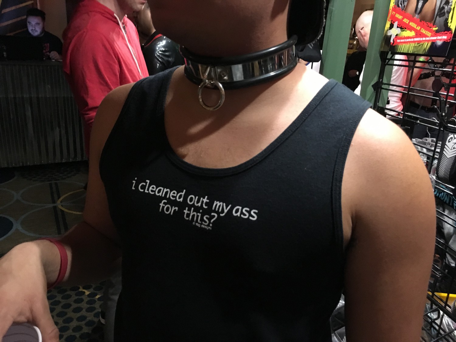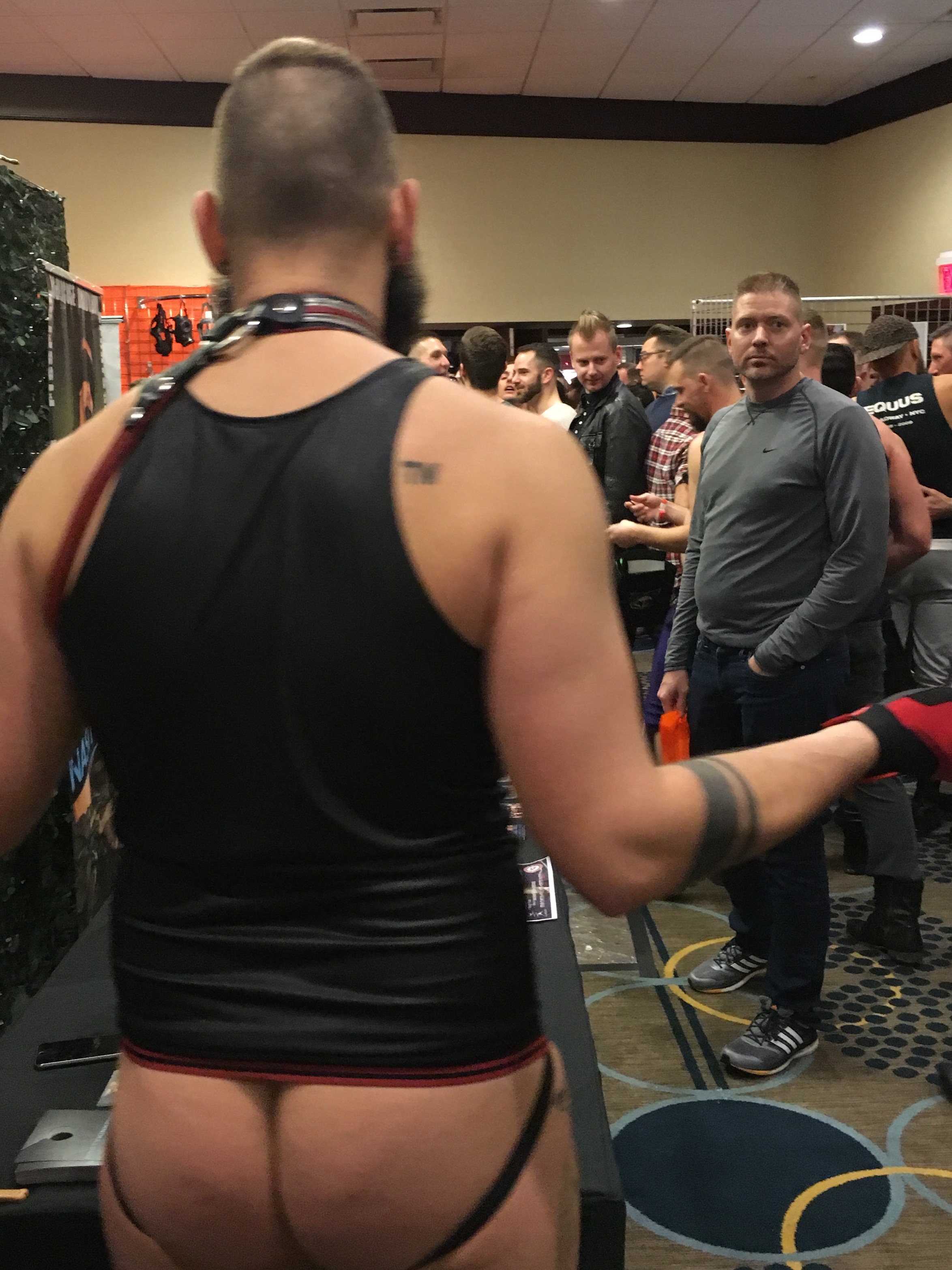 I personally got pulled into some untoward shenanigans yesterday and abandoned my boothmates for the better part of the afternoon (insert combination embarrassed/pleased gif), but I still managed to get some incriminating photos of the massive number of guys who turned up on Saturday in their finest leather accessories. Behold: