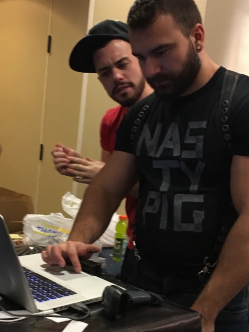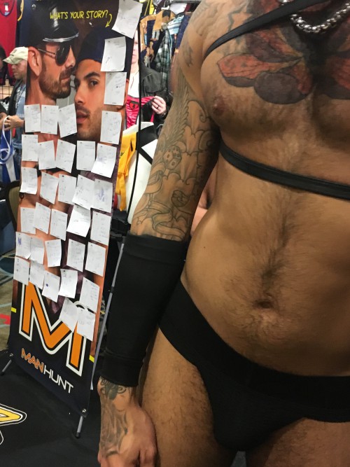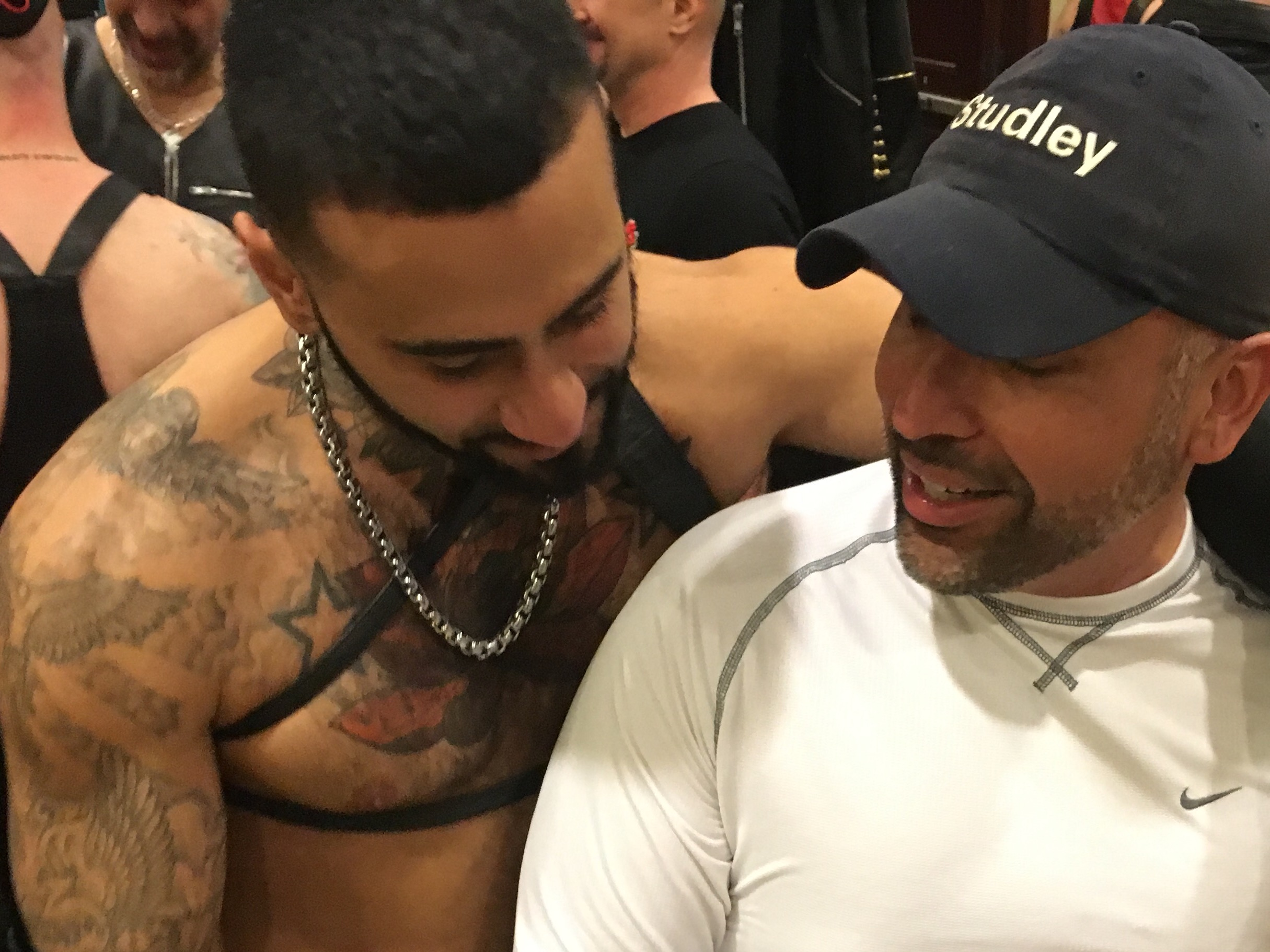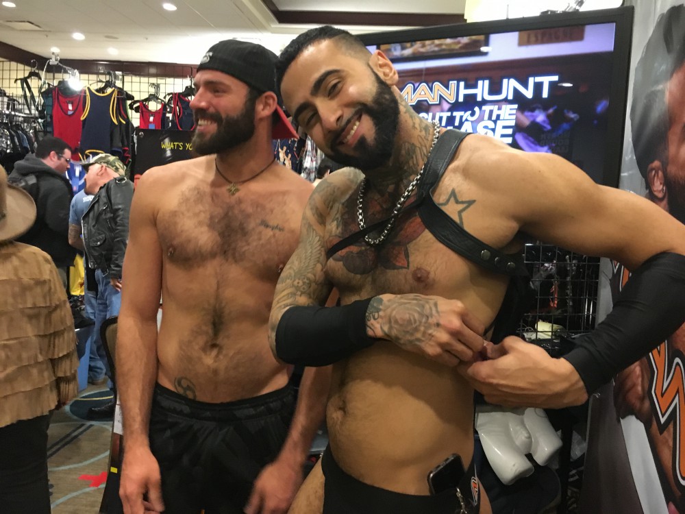 I can’t believe how quickly the time passes here in DC when you’re surrounded by half naked (and if you’re away from the hotel lobby, sometimes fully naked) leather dudes and fans. Manhunt had another full day down at the Mid Atlantic Leather marketplace, collecting stories, taking picks, and basically pimping out our booth bitches, Boomer Banks, Rikk York, Deviant Otter, and Xavier Jacobs, to interested parties.