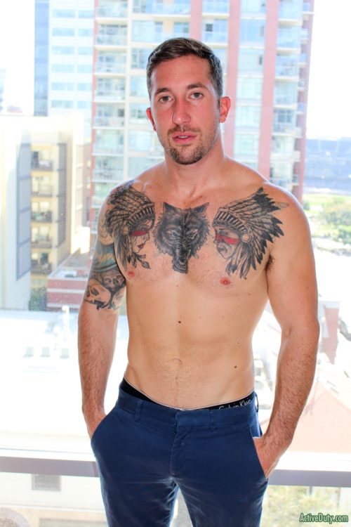 Oh, Active Duty. Never change. Keep getting straight dudes to jerk off for the camera. Brad Powers is a built stud with a big dick and the willingness to fist it until he explodes into a shower of jizz.