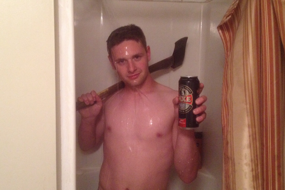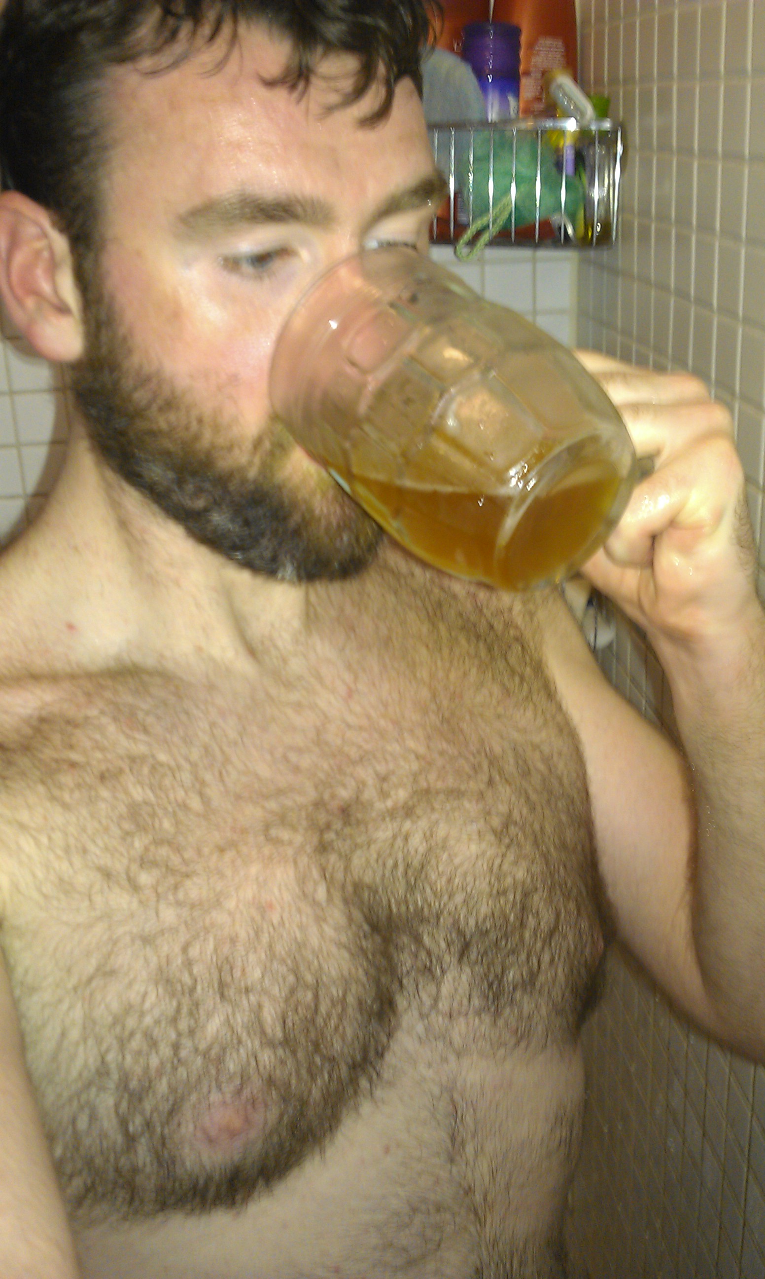many hot fellas many of them hairy loving it!!! and also wet and with beer love this post hehe only one pic kinda odd…..wats the fella doing with a axe in the shower?