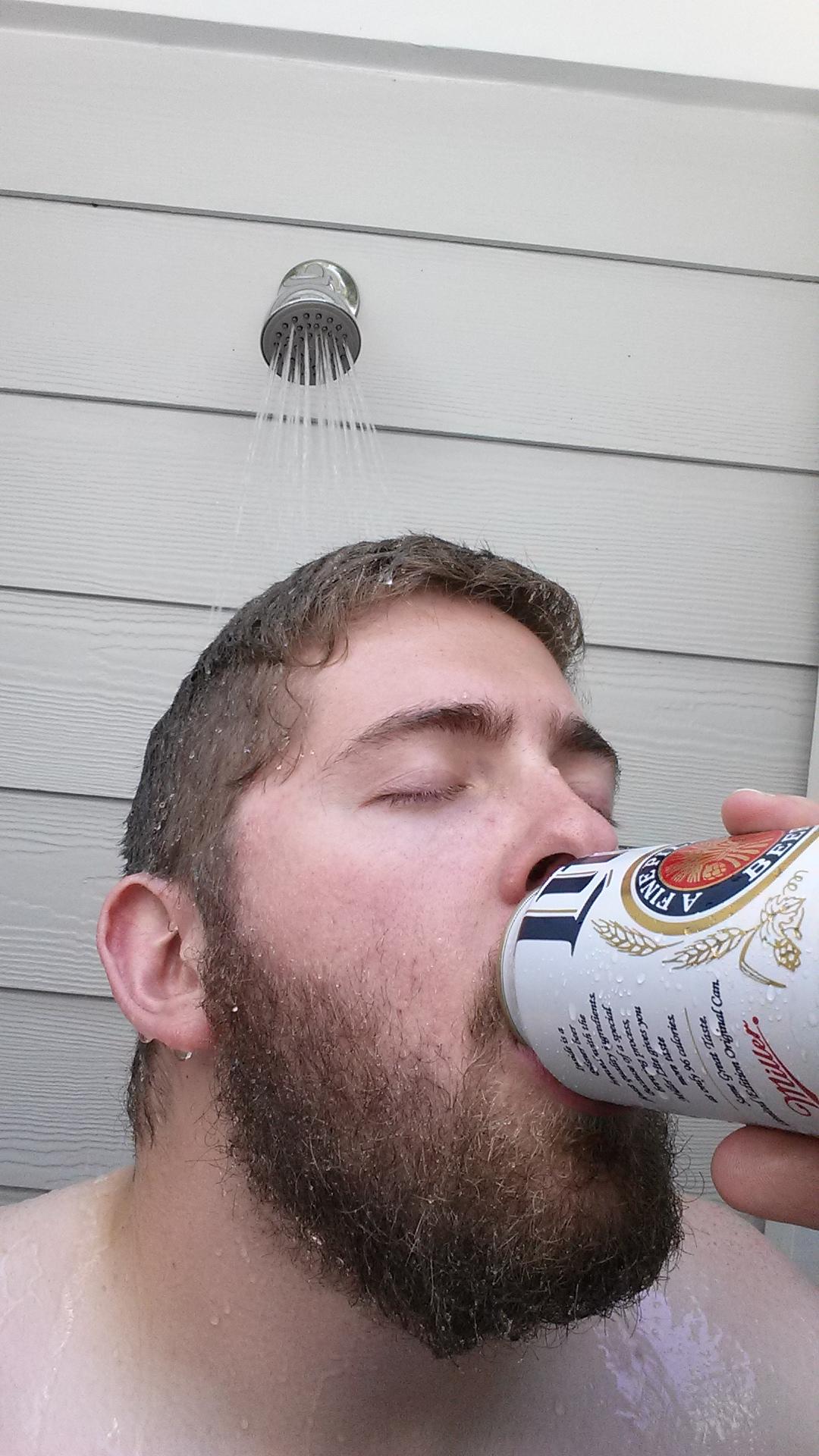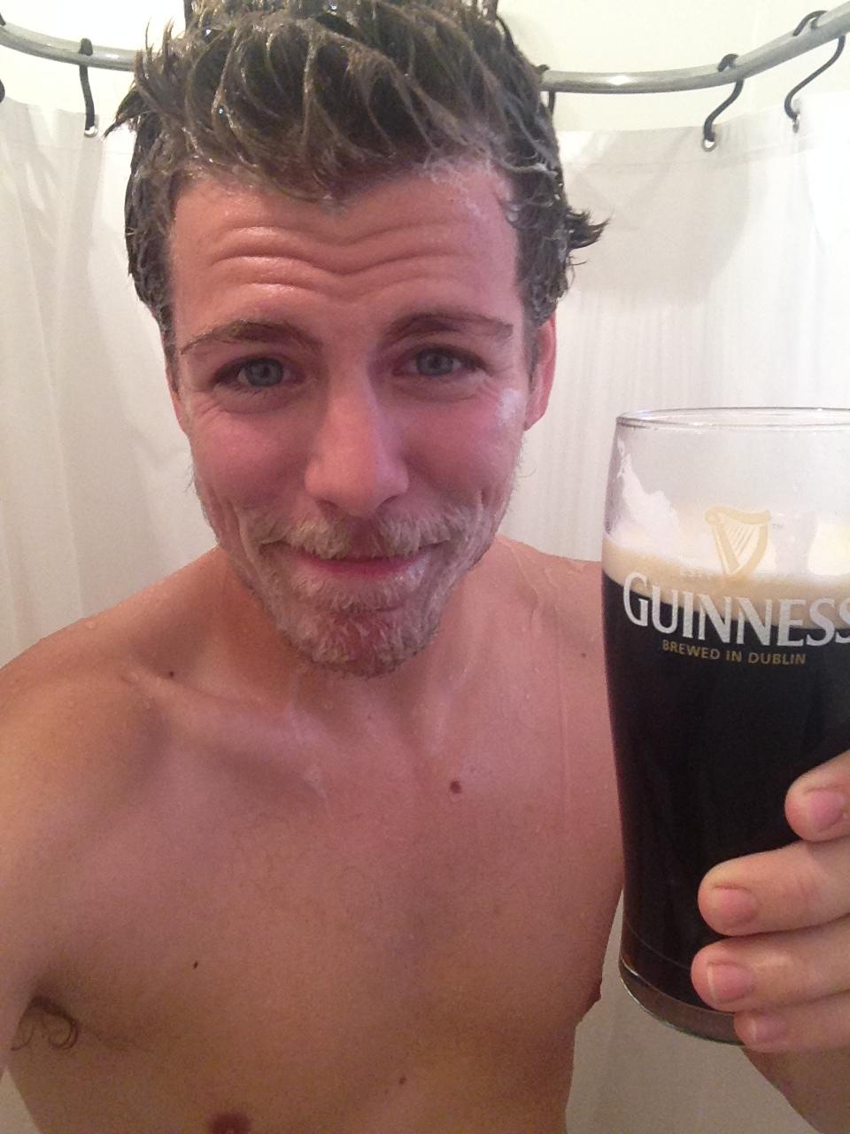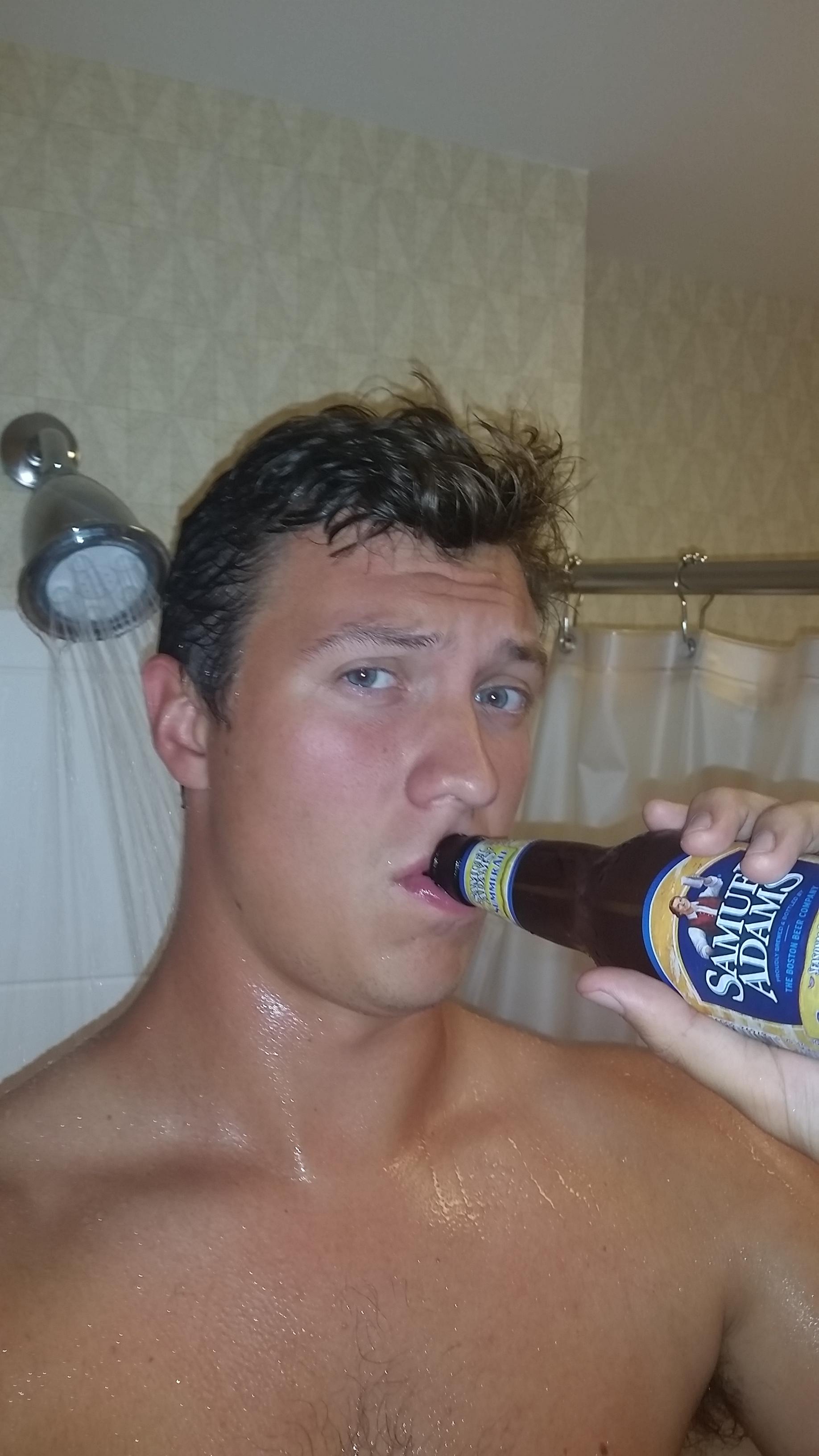Check out a few handsome gentlemen enjoying their shower beers below: