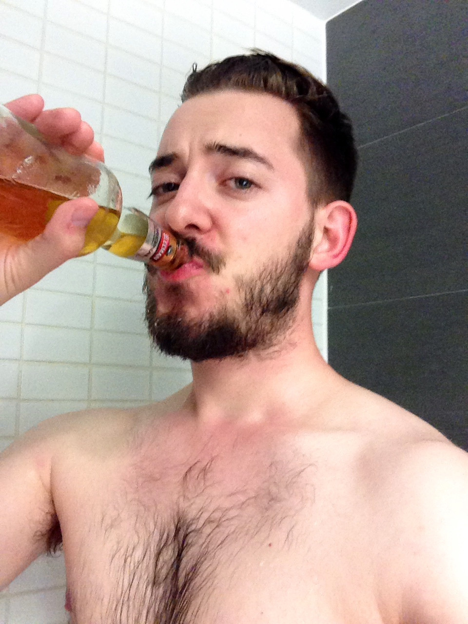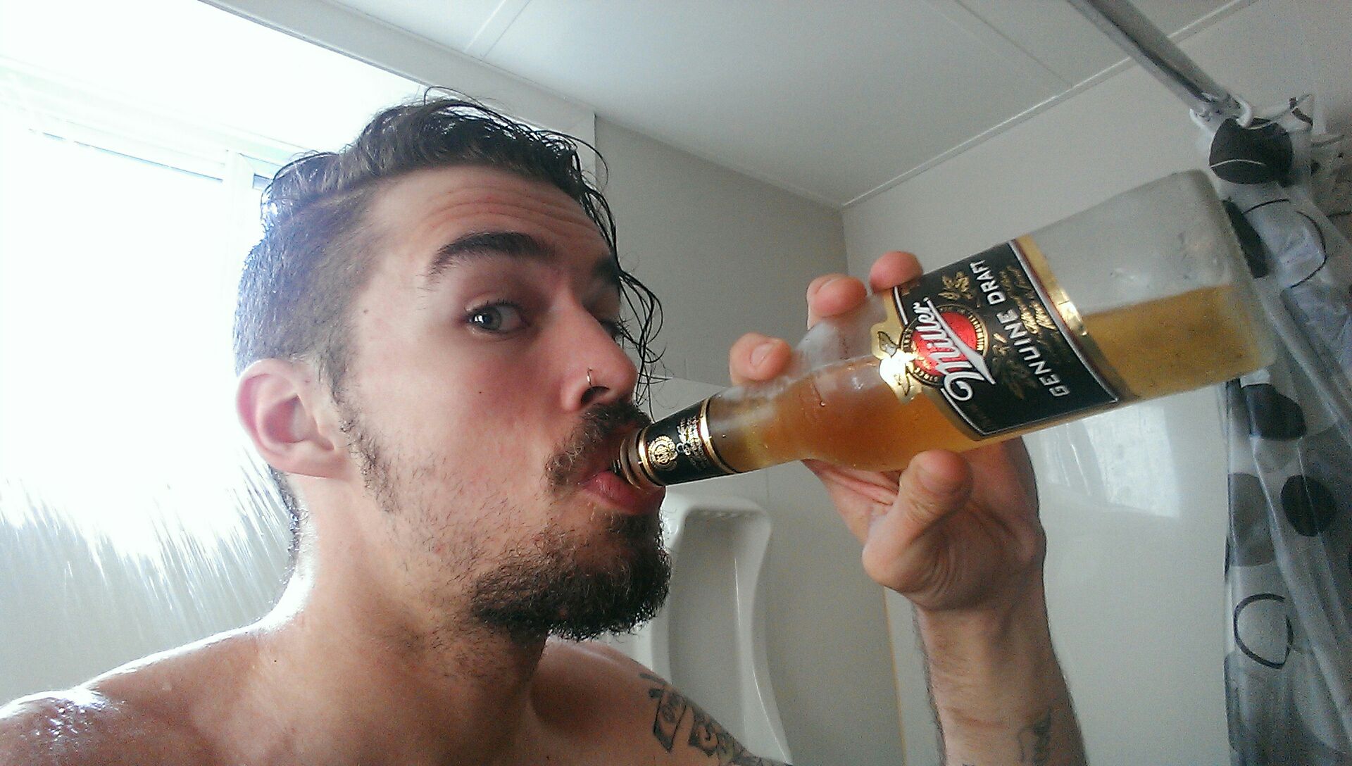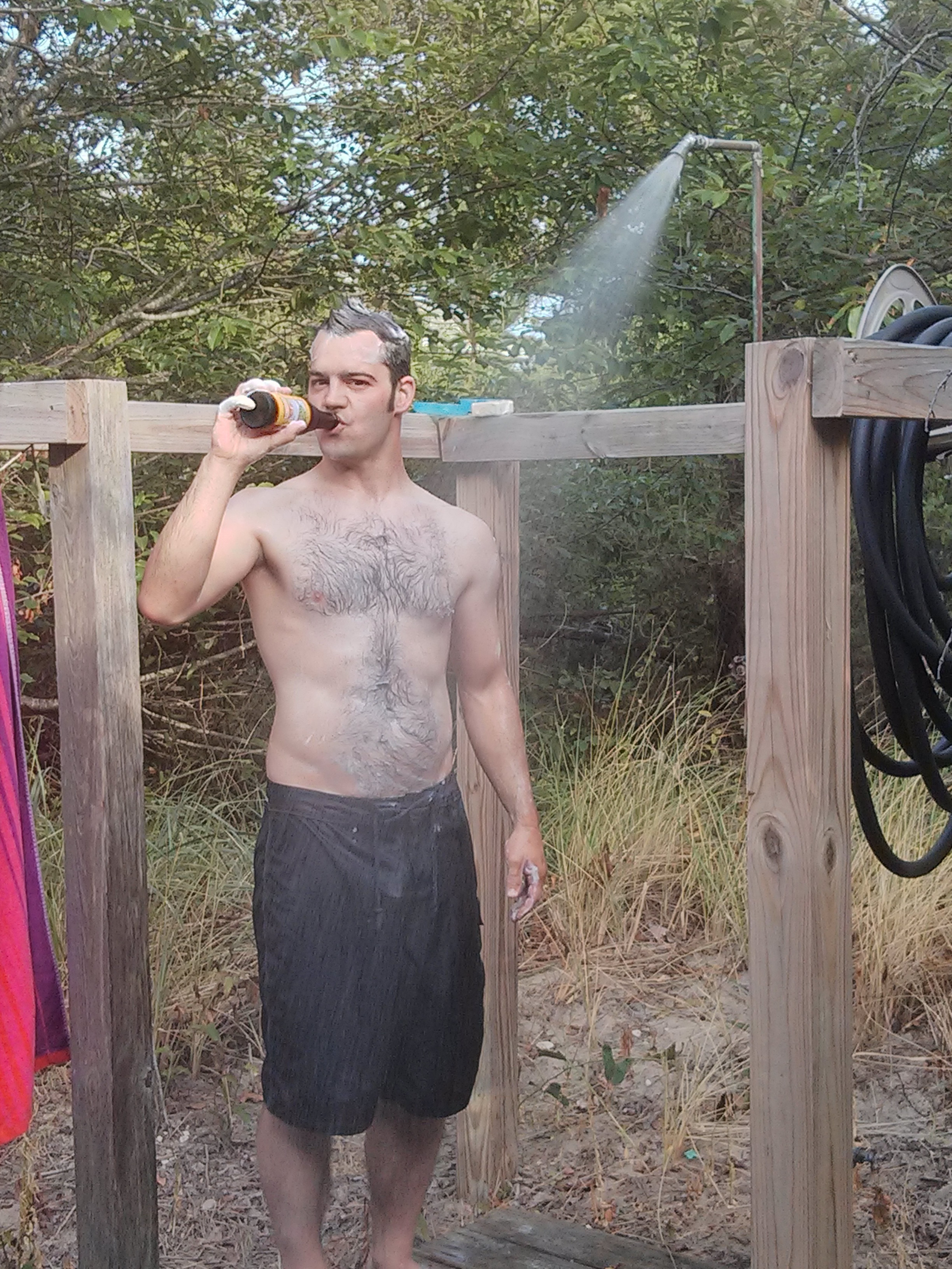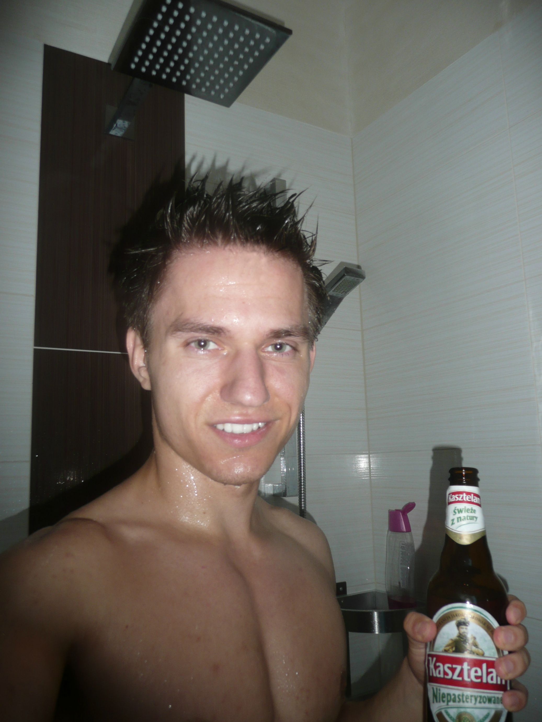 Check out a few handsome gentlemen enjoying their shower beers below: