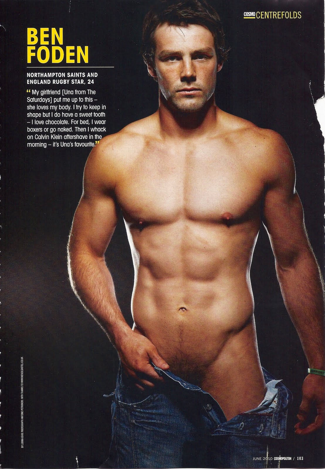 We wrote: “Every time I type Ben Foden‘s name, I keep wanting to type Ben Cohen. The two English rugby players are equally hot in their own special ways—and Cohen even makes a cameo in today’s edition of The Locker Room—but they are most certainly not the same person. Foden’s got a classically handsome look, whereas Cohen’s the big beefy teddy bear you want to hug and never let go. While Foden might not be the founder of an international foundation to combat homophobia and bullying, he likes us enough to pose shirtless on a major gay magazine. That’s a start, right?”