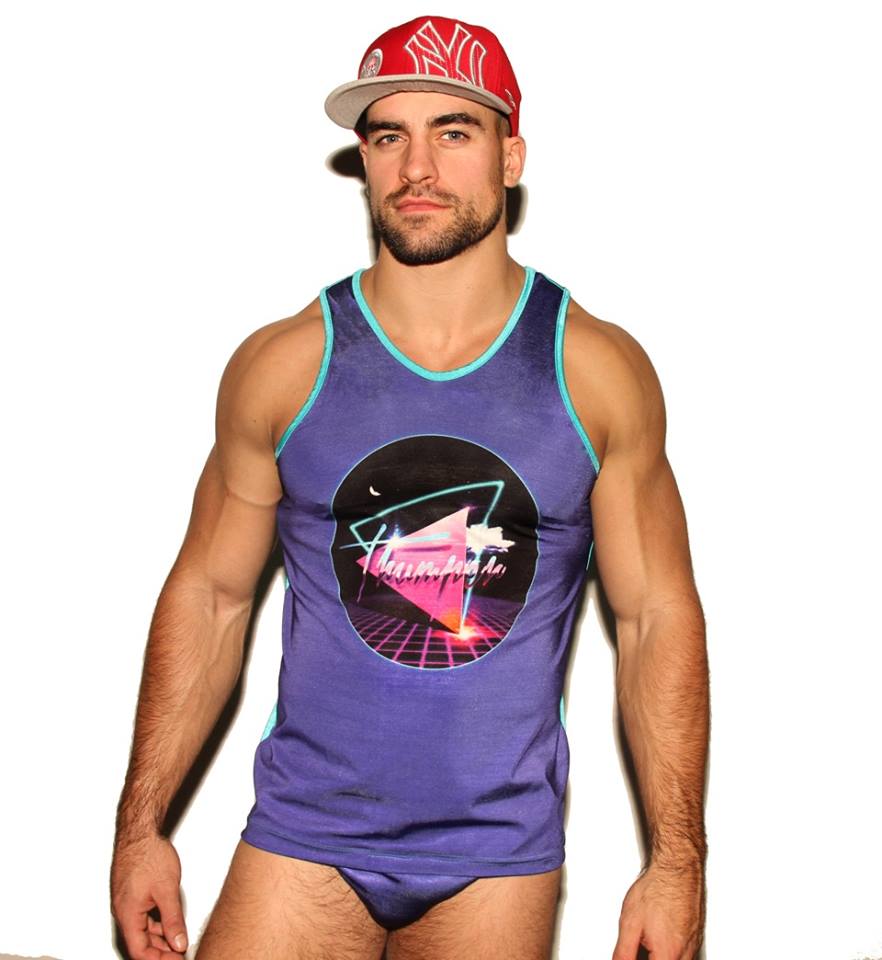 Seriously, though! This swimsuit could only be better if it were shipped to me with an economy-sized bottle of lube, a lifetime supply of condoms, a golden butt plug and this particular Slick It Up model popping out of the delivery box, making demands that I immediately eat his ass until he cums.