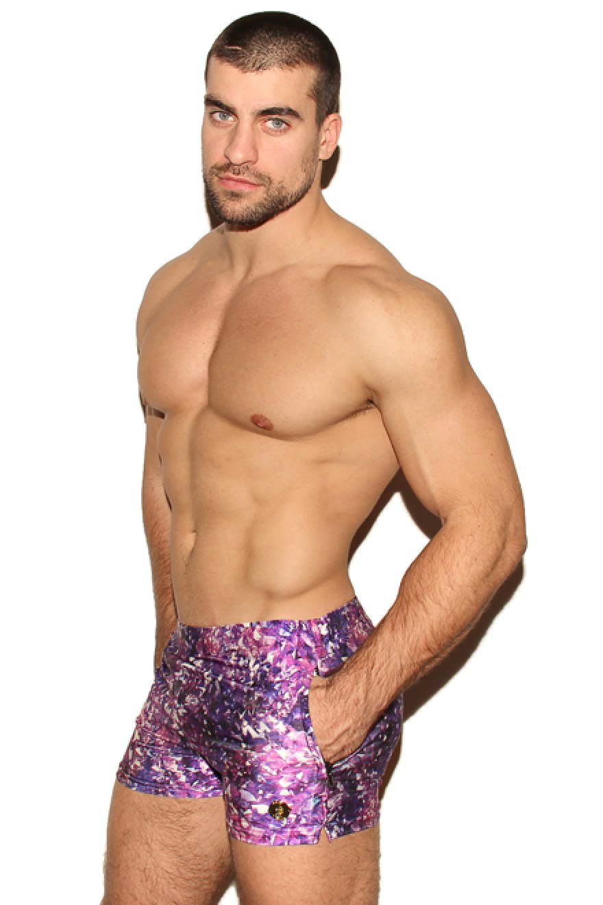 The purple shorts are cute…the cat makes me smile… Back in the 90’s I’d of had the looks / body for these…now I’m just too old and pudgey! Kudos to guys who can pull these off!